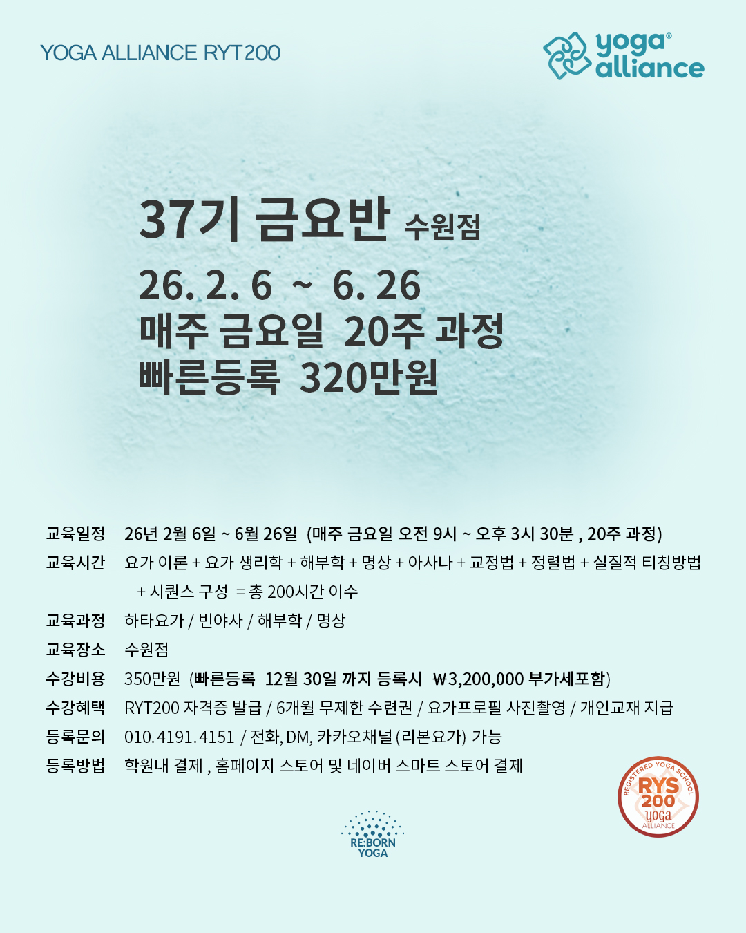 RYT200®국제 요가지도자과정 37기수원점 / 매주 금요일