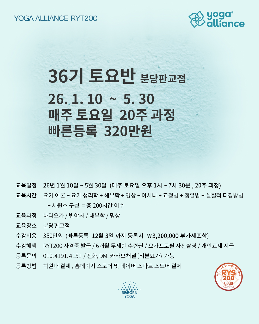RYT200®국제 요가지도자과정 36기분당 판교점 / 매주 토요일