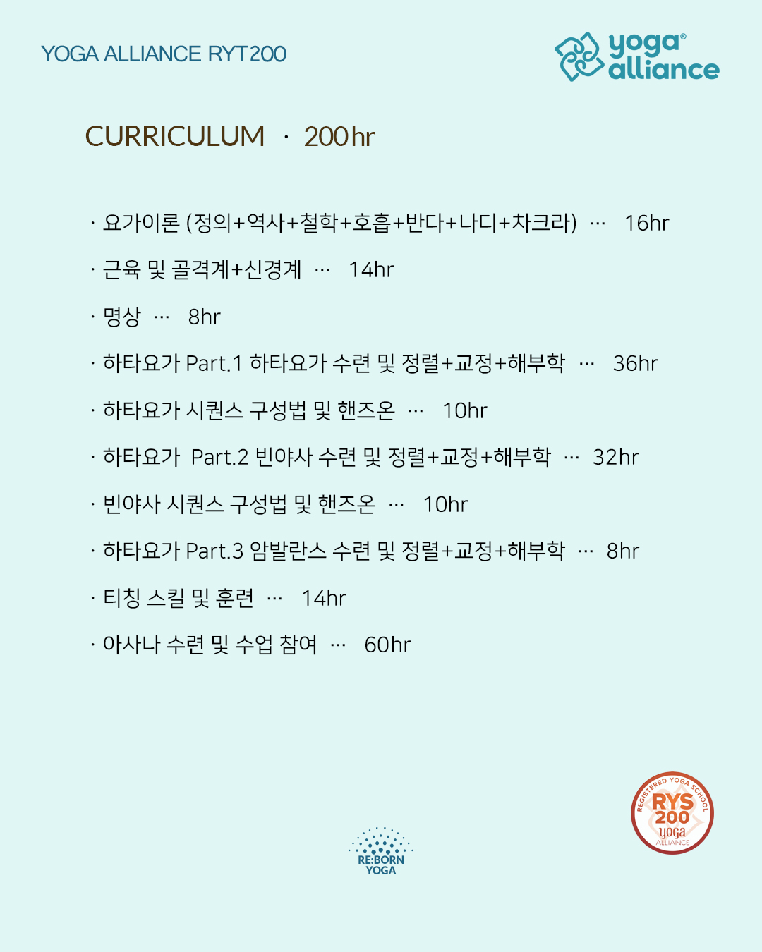 🙌 리본요가원은 미국 Yoga Alliance 로부터 인증받은 RYS200 기관이며 과정 수료시 국제요가자격인 RYT200 에 등록할 수 있는 자격이 주어집니다